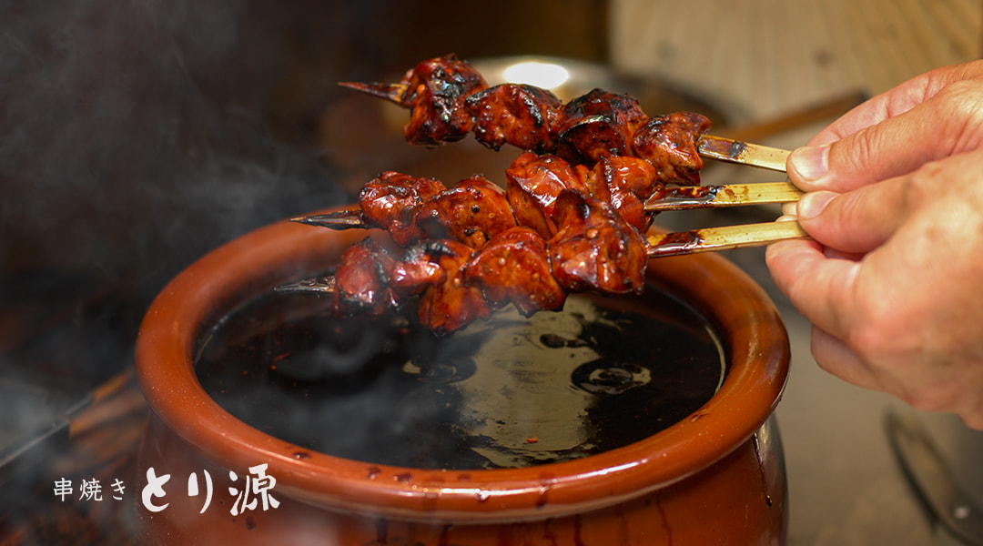 とり源の自慢は、炭火でじっくりと焼き上げる串焼き。