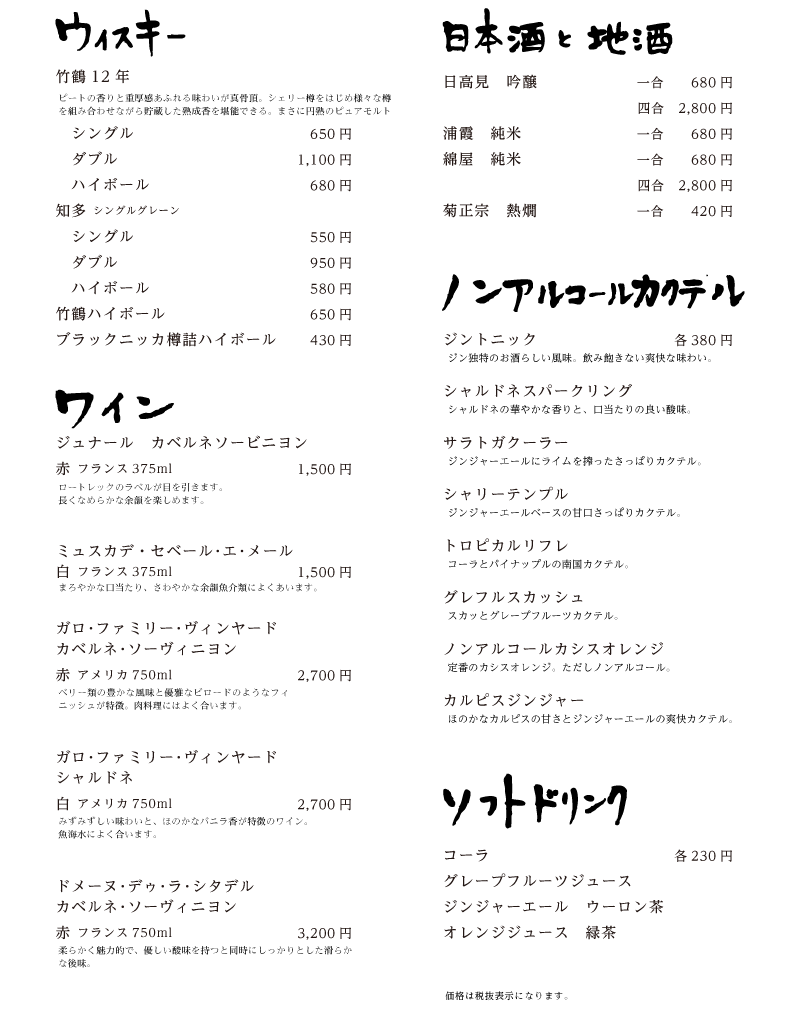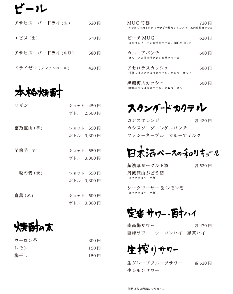 ※最悪の場合、飲み放題を終了させていただく場合もございます。